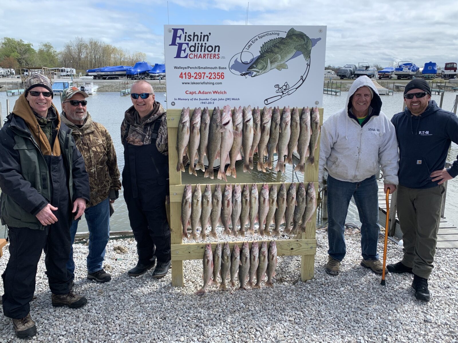 Fishin’ Edition Charters Lake Erie fishing for Walleye, yellow perch and smallmouth. Pictured below are groups of friends and families throughout the years, catching racks and coolers full of Lake Erie walleye and yellow perch.